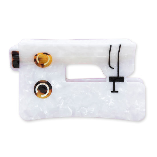 Our Sewing Machine Hair Claw Clip is the perfect accessory for any sewist or maker! Made with plant-based acetate, it features our signature sewing machine shape in pearl white tortoise shell. Keep your hair in place while adding a touch of whimsy to your daily look.