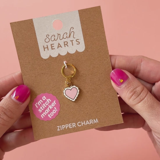 Add a touch of charm to your knitting and crochet projects with the Sweet Heart Stitch Marker. This metal enamel marker features a large circle clasp, making it easy to keep track of your stitches. Plus, it doubles as a cute charm for necklaces, bracelets, or even as a zipper accessory—fun and functional all in one!
